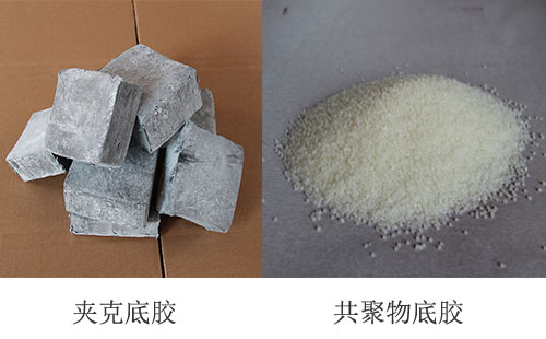 目前管道防腐热熔胶有两种,其一是将EVA、液体石蜡和增粘树脂经加温熔融冷却后制得的块状改性EVA热熔胶粘剂(夹克底胶)。其二是选用适当牌号的聚乙烯塑料树脂,经高混塑料挤出通过马来酸酐接枝后的光亮透明均匀颗粒烯烃共聚物热熔胶粘剂(共聚物底胶)。
