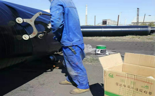 按照胶带的使用说明进行施工。通常情况下,需要将胶带从一端开始缠绕在损伤区域上,并确保每层重叠一定的宽度,以确保完全覆盖损伤区域,增大修复胶带的涨力,达到严密的贴敷效果。使用适当的工具,如刮板或滚筒,确保胶带与管道表面紧密贴合。管道表面温度应保持在5℃以上,湿度应小于85%,以保证防腐胶带的正常固化。